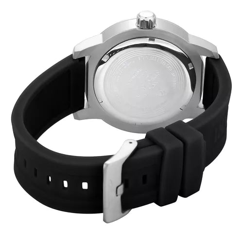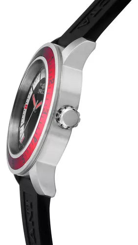 Um relógio resistente que combina estilo e função. Com uma caixa de 45 mm em aço inoxidável, este relógio possui uma moldura preta e vermelha que adiciona um toque de cor. Seu mostrador de metal é protegido por cristal resistente a riscos e possui um movimento preciso de quartzo. A pulseira de silicone preto proporciona conforto e durabilidade, tornando este relógio perfeito para quem leva uma vida ativa. Resistente à água até 100m.