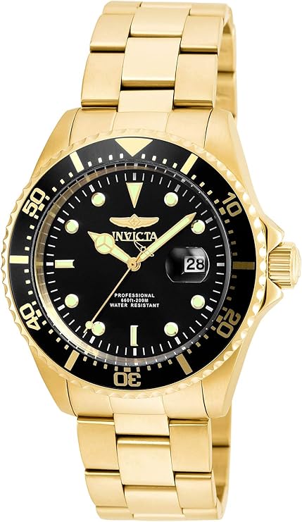 Desfrute do estilo e da precisão do relógio Invicta Pro Diver. Com movimento japonês e resistência à água de 200m, este relógio é ideal para homens que buscam praticidade e elegância. Com caixa e pulseira de aço inoxidável dourado, cronógrafo e calendário, é perfeito para qualquer ocasião.