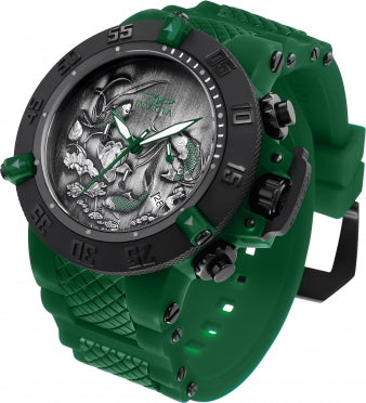 Este Relógio Invicta 26563 apresenta uma caixa e mostrador duráveis, feitos de aço inoxidável e plástico. A moldura em preto e verde adiciona um toque moderno e elegante. Com um movimento de quartzo preciso e resistência à água de 200m, a banda em aço inoxidável, silicone e plástico oferece conforto e estilo.