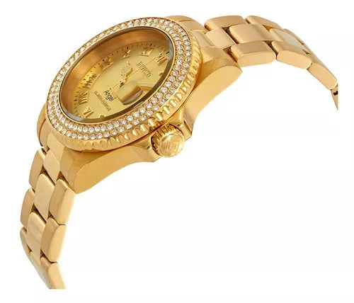 O Relógio Invicta Angel 22875 combina elegância e funcionalidade. Com caixa de 40mm em aço inoxidável e o brilho do cristal de 120 pedras, o mostrador de madrepérola e o movimento suíço proporcionam precisão e sofisticação. Resistente à água até 200m, é perfeito para os momentos mais especiais. Disponível na cor ouro.
