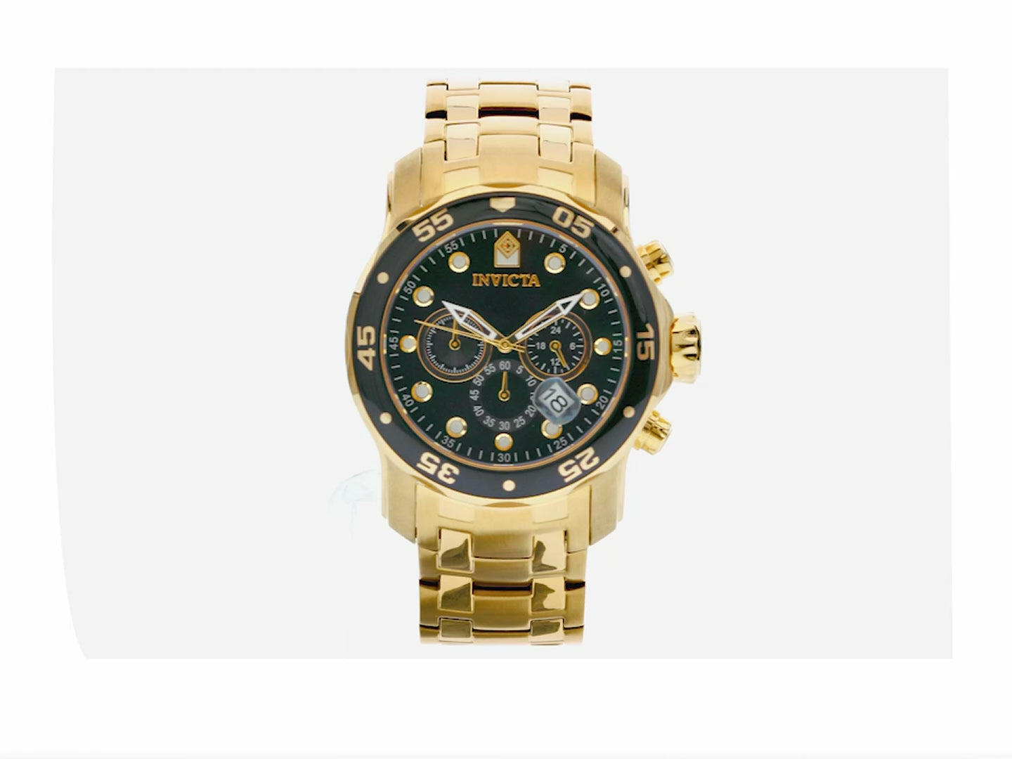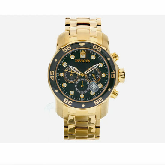 O relógio masculino Invicta Pro Diver 0072 combina estilo e funcionalidade. Com uma caixa de 48mm em aço inoxidável e coroa push, a moldura preta e dourada adiciona um toque elegante. Equipado com o movimento VD53 de quartzo e resistente à água até 200m, este relógio é prático e durável. A banda de aço inoxidável com tom dourado e comprimento de 215mm proporciona conforto e estilo.